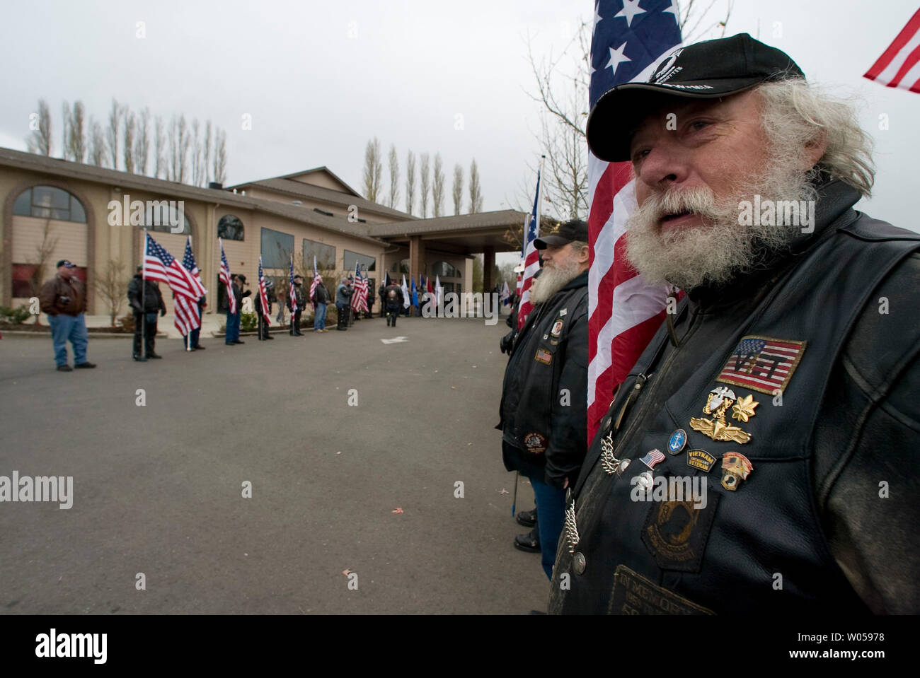 Jerry Culberson R A Member Of The Patriot Guard Riders Stands In Line Along The Driveway To The Christian Life Center To Keep Away Westboro Baptist Church Demonstrators Protesting The Funeral Of